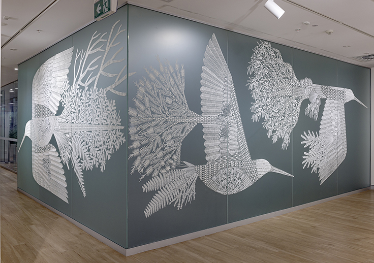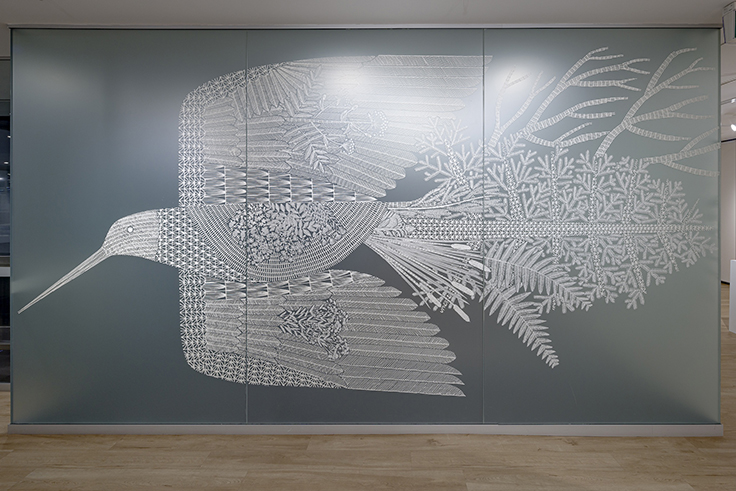 オオジシギとともに北海道とオーストラリアの植物が描かれたこの壁画作品は、本展会期終了後に撤去され、この世界から姿を消します。しかしこの越境と往還の物語は、THE JAPAN FOUNDATION GALLERYを訪れた皆さんの記憶へと刻まれ、そしてそこからまたいくつもの新しい物語となって語り継がれていくことでしょう。私たちが再び国境を越え、他者との交流をもつことができるようになった今、「渡り(Wayfinder)」の示す「道(Passage)」を見つめ、海の向こう側へ思いを馳せてみてください。